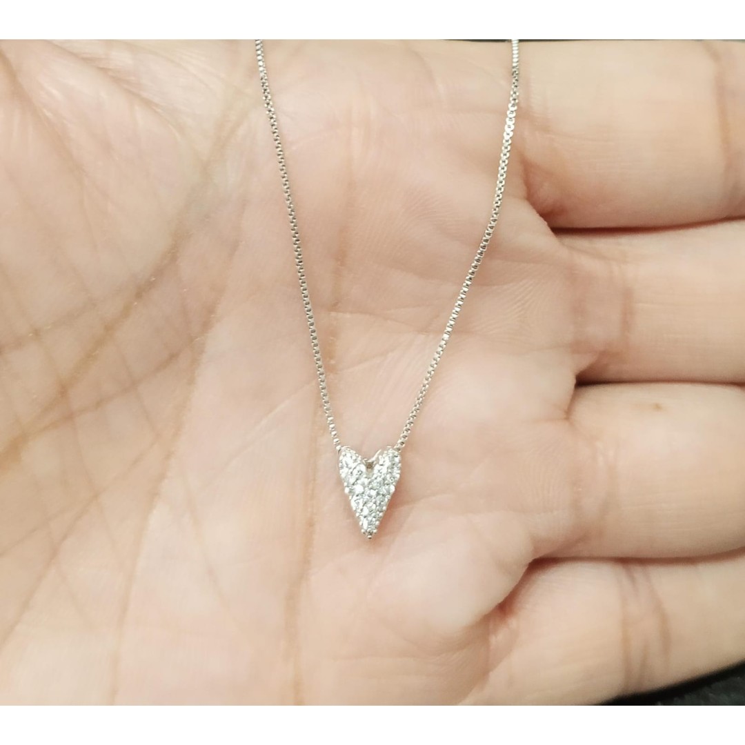 Colar coração puxadinho mini 0.8mm com zirconia corrente fininha 0.6