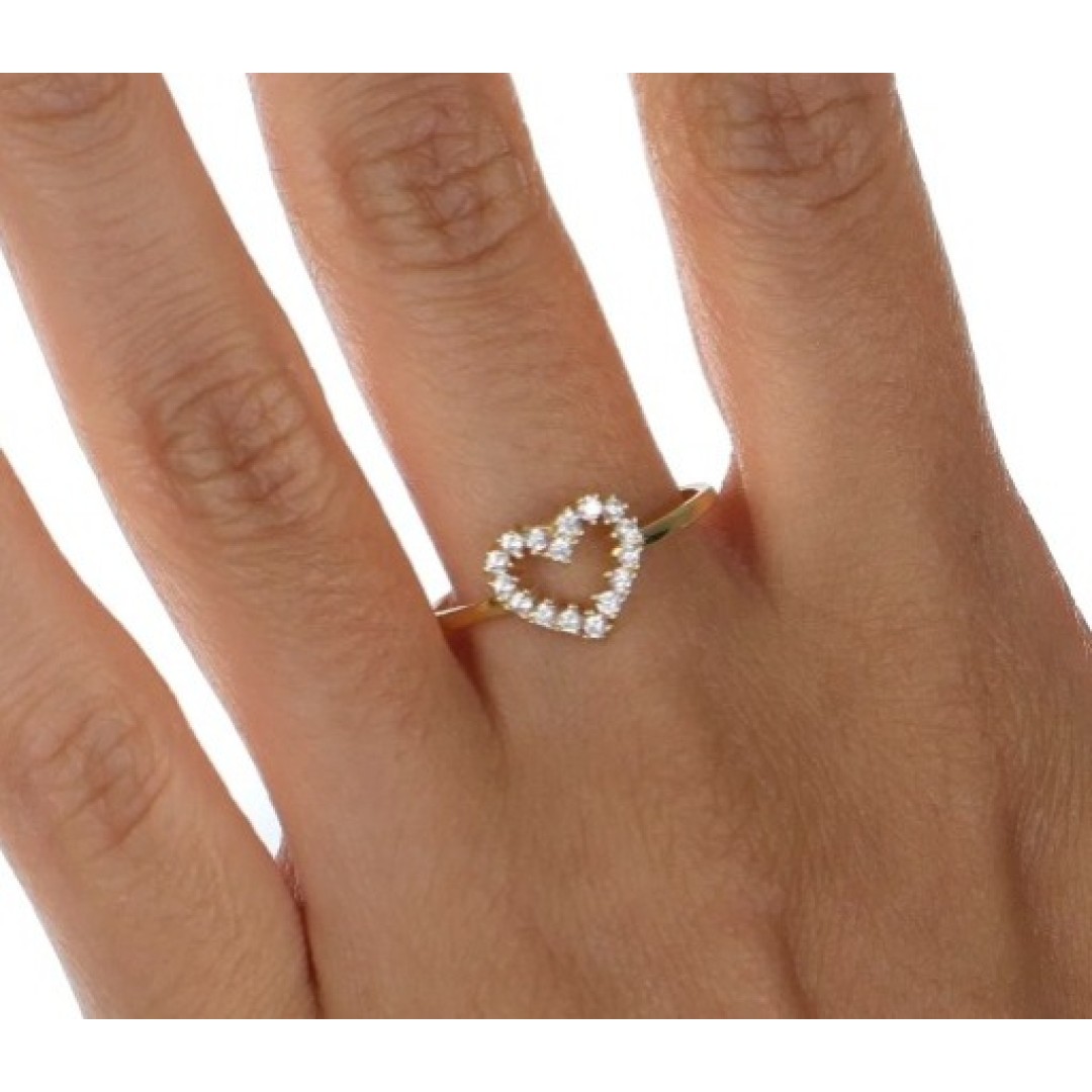 Anel coração vazado com zircônias