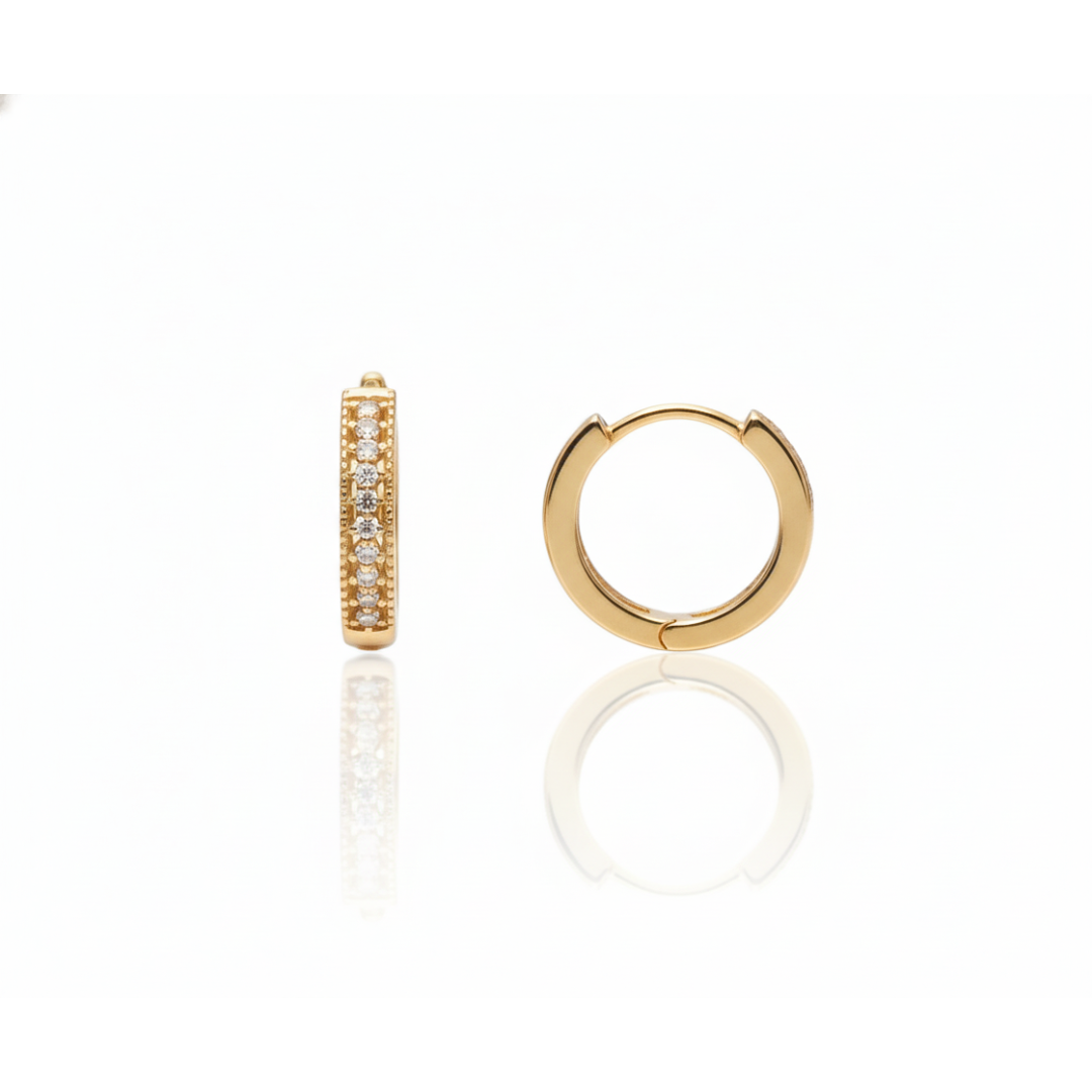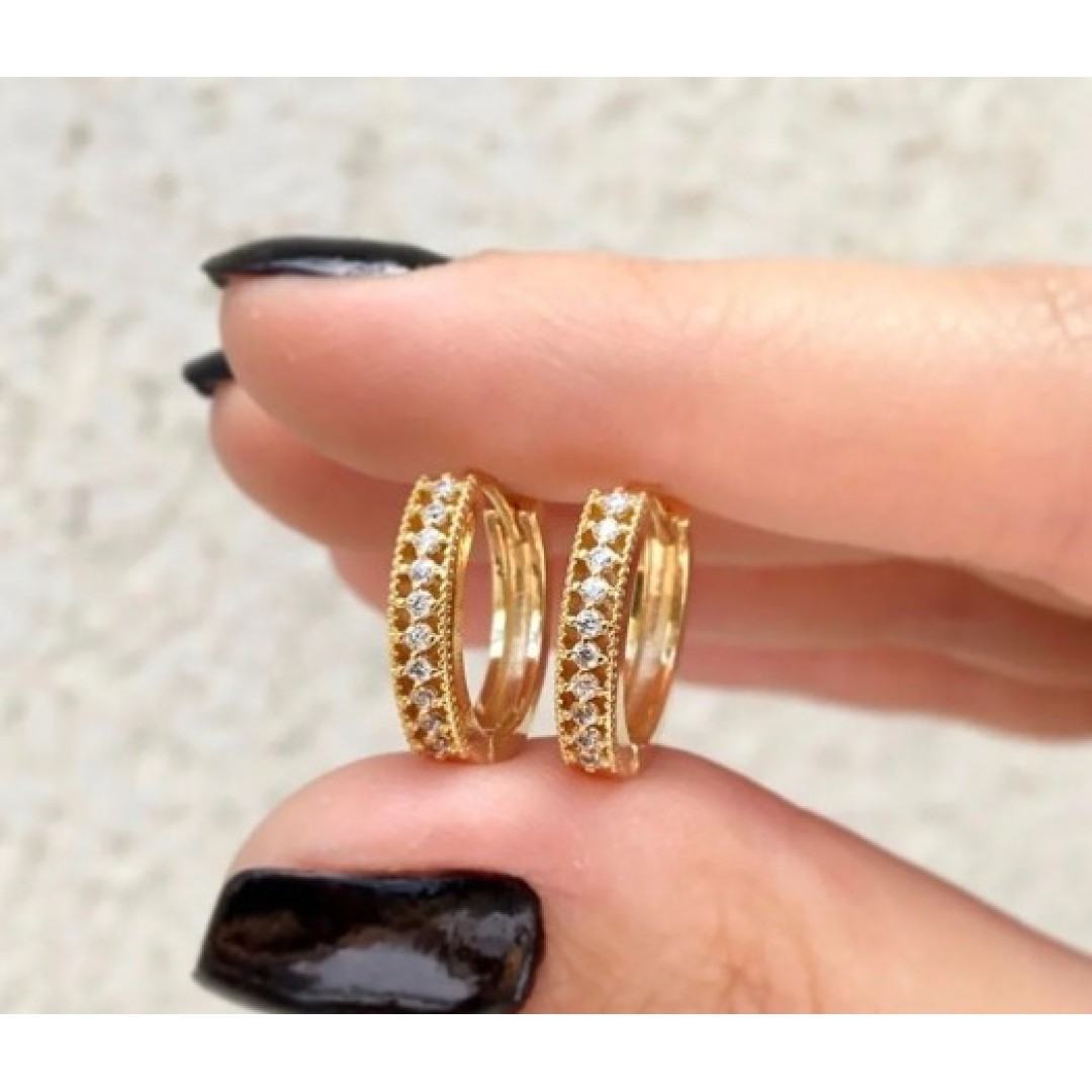 Brinco argola click com zircônia detalhes vazadinho na lateral G