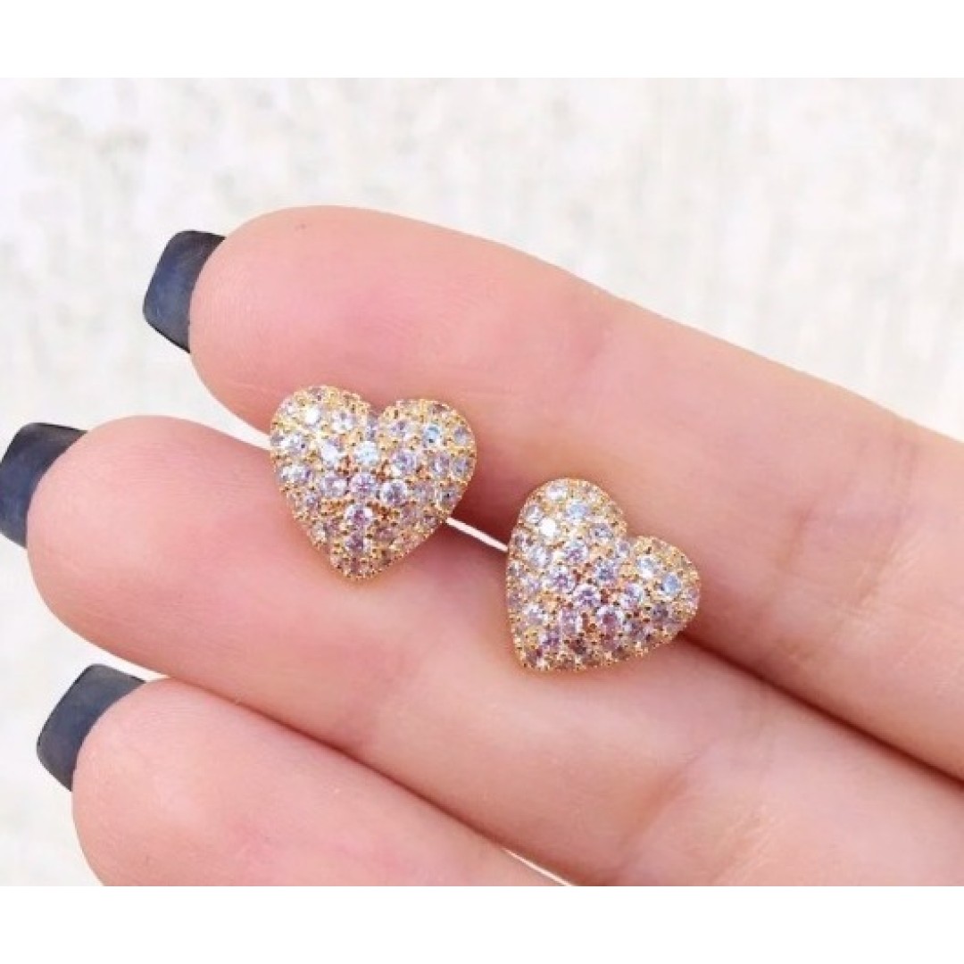 Brinco coração gordinho cravejado M