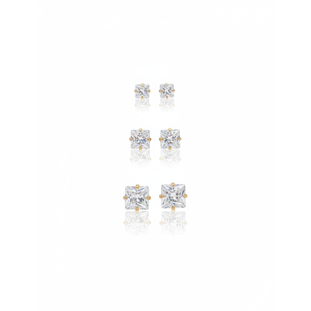 Brinco quadrado fixo 4mm zirconia P