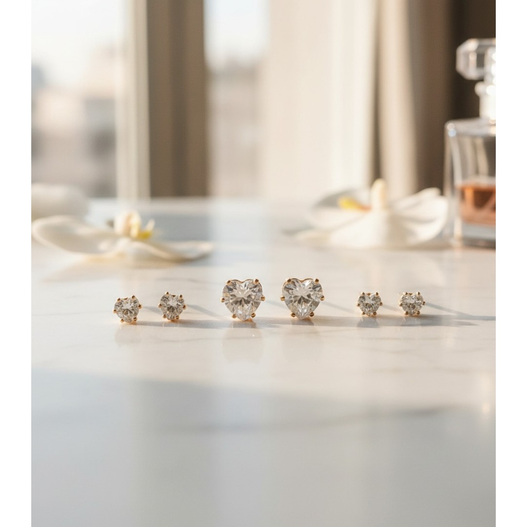 Brinco ponto de luz zirconia coração 5mm M