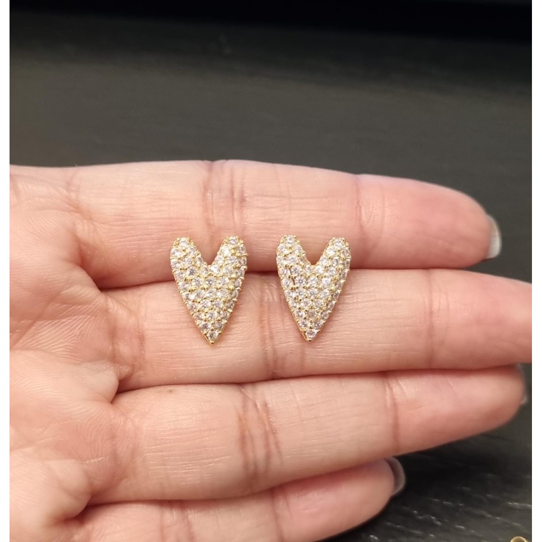 Brinco coração puxadinho com zirconia G